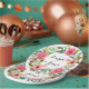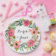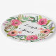Rose and pink coloured watercolor flowers with dabs of peaches and cream and a just a pop of lavender. Green leaves compliment the flowers. These cheerful paper plates have a bright white background and dark charcoal grey text (you can change the colour). Soft, flowing, romantic design makes for a lovely place setting for your wedding shower, anniversary or other special occasion. Easily change the wording to match your special occasion.