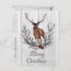Offer a note of Seasons Greetings and Merry Christmas to family and friends this year as you mail out these sweet rustic big buck deer Christmas Greeting Postcards. These festive Xmas Postcards feature a soft grey barn wood background with a big buck deer and botanical country accents. Trendy script text says "Merry Christmas". Put a family photo on the back and conveniently preprint your signatures and return address on the back of the card for a extra special and unique touch.