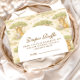A sweet storybook-style safari design featuring gentle watercolor baby animals including lions, giraffes, and elephants surrounded by soft jungle greenery and delicate botanical details. The warm neutral palette of cream, honey gold, and soft olive creates a timeless nature-inspired aesthetic, while the elegant arched layout leaves beautiful space for personalized event details.