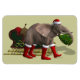 father christmas got a big little helper: a cute mammal with red boots and hat,bringing this year the xmas tree and a sack full of presents - strong enough to pull the sledge easily