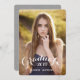 Perfect photo card inviting your family and friends to your daughter's graduation party. Sweet Script | 2015 Graduation Party Invitation. Design by Elke Clarke © for MonogramGallery. Add your own photo and text. An elegant retro white script font text overlay with the words "2015 Graduate" is printed on the front with a slight grey ombre effect. Add your invitation text on the back of the card with a modern white font on a (printed photo effect) vintage light grey or grey kraft paper background. Other styles and colours available.