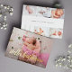 Elegant birth announcements feature your favourite newborn photo in full bleed, with baby's name overlaid in gold foil calligraphy script lettering. Personalise with baby's birth stats beneath. Add six additional photos to the back in a collage layout, with the parents' or family's names in the centre.