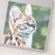 This adorable face belongs to a serval kitten. This design was drawn with pan pastels and colored pencils.