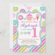 This adorable Sweet Shoppe birthday party invitation features a colourful design full of sprinkles, stripes, polka dots and sweet treats including a cupcake, candy, doughnut, lollipops and ice cream! This is the perfect invitation for any sweets theme or sweet shoppe invitation for any age!