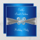 Sweet Sixteen 16 Blue with Silver Ribbon Butterfly Jewel Trim Birthday Invitation , Sweet Sixteen Birthday Party. Customise with your own details. Matching RSVP available.