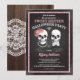 Designed with retro chalkboard, skulls and red roses & bow tie. Back side is decorated with elegant lace graphic.