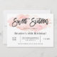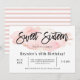 Pretty blush pink watercolor and gold faux glitter abstract shape, 16th birthday party invitation. Back of card features coordinating pink watercolor stripe pattern.