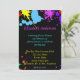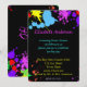 Sweet Sixteen, Quinceanera or Bat Mitzvah Party, Bright Neon Invitation. Colourful paint splatter on black. DOES NOT ACTUALLY GLOW. ALL DESIGN ELEMENTS ARE PRINTED.