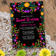 Sweet Sixteen Black Mexican Fiesta Folk Art Floral Invitation