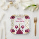 This sweet sixteen plate features an elegant gold frame, a beautiful princess with blonde hair and a burgundy red dress, flowers and a balloon. This is perfect for a sweet sixteen birthday party.