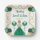 This sweet sixteen plate features an elegant gold frame, a beautiful princess with blonde hair and a green dress, flowers and a balloon. This is perfect for a sweet sixteen birthday party.