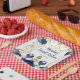 This sweet sixteen plate features an elegant gold frame, a beautiful princess with blonde hair and a navy blue dress, flowers and a balloon. This is perfect for a sweet sixteen birthday party.