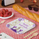 This sweet sixteen plate features an elegant gold frame, a beautiful princess with blonde hair and a purple dress, flowers and a balloon. This is perfect for a sweet sixteen birthday party.