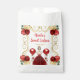 This sweet sixteen favour bag features an elegant gold frame, a beautiful princess with blonde hair and a red dress, flowers and a balloon. This is perfect for a sweet sixteen birthday party.