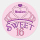 Sweet Sixteen Cute Tiara Pink Birthday Party Classic Round Sticker