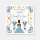 This sweet sixteen napkin features an elegant gold frame, a beautiful princess with dark skin and a dusty blue dress, flowers and a balloon. This is perfect for a sweet sixteen birthday party.