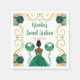 This sweet sixteen napkin features an elegant gold frame, a beautiful princess with dark skin and a green dress, flowers and a balloon. This is perfect for a sweet sixteen birthday party.