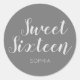 Sweet Sixteen elegant modern Gray and White Classic Round Sticker