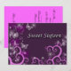 Purple and pink Sweet Sixteen invitation with abstract swirls and butterflies.