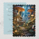 Beautiful enchanted forest with elegant, white fairies, and a sweet little woodland cottage, that is surrounded by pretty glowing mushrooms. There is a lovely rock path leading to the cottage, bright welcoming lanterns and stone stairway.