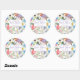 Sweet Sixteen flower garden Classic Round Sticker with pretty wild country flowers in purple, lavender, green leaves and more, with a brushed script typography on an elegant editable background.