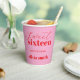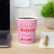 Minimalist sweet sixteen 16th birthday paper cups featuring simple modern typography in pink and red colour.