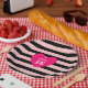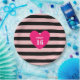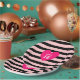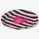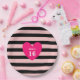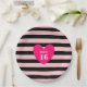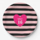 Sweet 16 heart on pink and black striped Birthday Paper Plate. Text can be personalised!