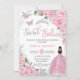 Sweet Sixteen Pink Floral Princess Silver Birthday Invitation