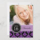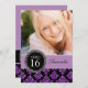 Girly, fun, cute, yet sophisticated and elegant, this personalised black and purple Glitter Damask Sweet Sixteen Party Invitation with your photo is the perfect way to invite your guests to your daughter's sweet sixteen party. Note: glitter is a PRINTED photo effect. Design by Elke Clarke©.