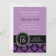 SWEET SIXTEEN, PURPLE GLITTER, BLACK DAMASK INVITATION