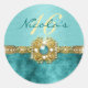 "sweet sixteen" teal gold 16 birthday classic round sticker