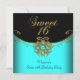 Sweet Sixteen Teal Gold Black Sweet 16 Invitation