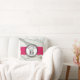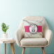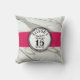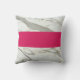 White marble, fuchsia pink, black hand drawn circles in personalised throw pillow. Modern trendy teenager girl gift for sixteen birthday party.
