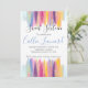 This colourful invitation is great for that sweet 16 birthday girl. Featuring watercolor style strokes with glitter accents.