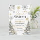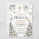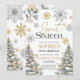 Sweet Sixteen Birthday invitations with gold and silver snowflakes and pine trees. Ideal for your 16th winter birthday party.