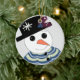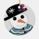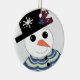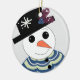 A sweet snowman wearing a black hat with a sweet expression on his face. Cute holiday design.