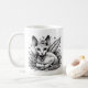 Awaken your senses with the charm of a sweet Sphynx cat surrounded feathers and butterflies on this enchanting coffee mug. The black and white ink drawing brings a touch of elegance to your morning ritual, as the feline muse and its delicate companions grace the ceramic canvas.