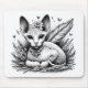 Delight in the grace of a sweet Sphynx cat in this enchanting black and white ink drawing. Adorned with delicate flowers and accompanied by whimsical butterflies, this feline muse embodies elegance and charm.