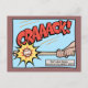 Pop art pic of the moment a bat hits a fastball, with comics explosion burst, "CRAAACK!" in big red letters and, "That's when Johnny discovered the SWEET SPOT!" Colour graphic on t-shirts, cards, gifts.
