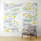 This extra larges fabric tapestry features hand drawn floral elements in minty greens, yellow and grey making it the perfect photo booth backdrop for a gender neutral baby shower, spring wedding or just as a fresh home decor element.