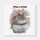 This magnet features a portrait of an adorable red squirrel in the fluffy white snow. She is saying: Welcome. The text can be customised or removed.