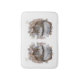 This animal bath mat features two adorable red squirrels with brown and white fur in the fluffy snow. What can they be saying?