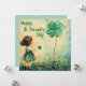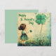 A sweet St. Patrick's Day card featuring a young girl looking at a four leaf clover. The front says; Happy St. Patrick's Day. The back says: To you. This is a flat, two-sided card.