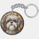 Sweet Stained Glass Dog Shih Tsu Key Ring