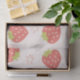 The design features a charming strawberry pattern on a light pink background.
