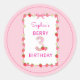 Sweet Strawberry 3rd Birthday Invitation Classic Round Sticker