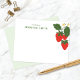 This elegant yet modern notecard design features an illustration of strawberry fruit, leaves, and petite blooms - all paired with modern typography. The backer features a light green and white diagonal stripe, which can be removed if desired. It makes a wonderful gift for anyone, but especially for a gardener.