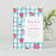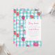 This sweet and cute baby shower invitation features a watercolor gingham background with multicolor pink and red strawberries.