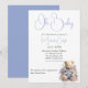 Sweet teddy bear with flowers boy's baby shower invitation done in a white background with adorable artwork of a teddy bear dressed in blue clothes, in front of flowers, on the bottom of the invitation. Personalise all the text fields for your baby shower event.