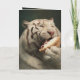 Send smiles with this surreal, humorous illustration of a white tiger enjoying a decadent slice of pie. Ideal for birthdays, celebrations, or just because.